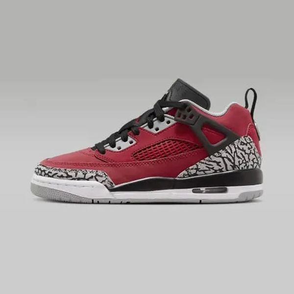 Представляємо кросівки Jordan SPIZIKE LOW (GS) у яскравому червоному кольорі, що доповнений чорними, білими та сірими акцентами, включаючи культовий принт «слонова шкіра». Ця модель є втіленням сміливого стилю та спадщини Jordan.