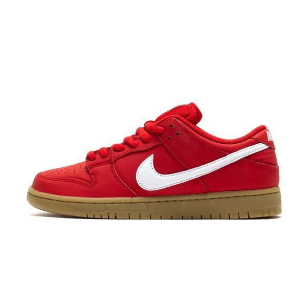 Кросівки Nike Dunk Low SB (FJ1674-600) у насиченому червоному кольорі поєднують класичний стиль та функціональність. Модель має червоний шкіряний верх, білий логотип Swoosh та гумову підошву карамельного відтінку, створюючи динамічний образ.