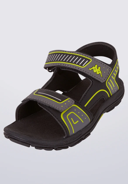 Представляємо дитячі сандалі Kappa PAXOS T 36 – ідеальний вибір для активних дітей. Ця модель виконана у класичному чорному кольорі, доповненому яскравими салатовими акцентами та сірими елементами, що надає їм сучасного та динамічного вигляду. Дизайн сандалів поєднує в собі практичність та стиль, роблячи їх універсальним варіантом для літнього гардеробу.